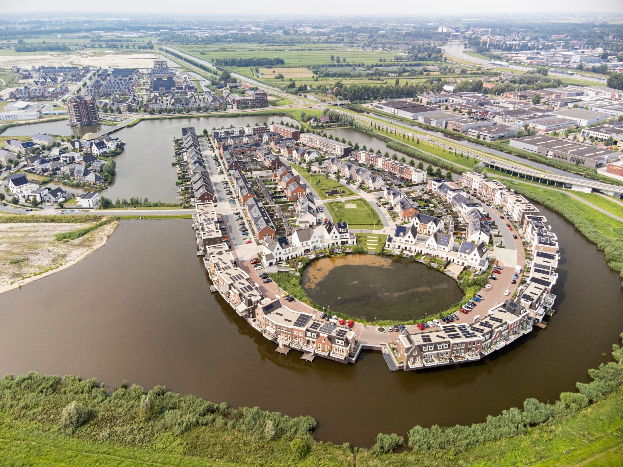 In de regio Utrecht speelt het woningtekort sterk. Tussen 2021 en 2024 wil de provincie 10.000 woningen per jaar bouwen. Een plek waar dat zou kunnen is de polder Rijnenburg. Het Hoogheemraadschap De Stichtse Rijnlanden vindt dit gebied eigenlijk niet geschikt voor woningbouw. Behalve als er rekening wordt gehouden met klimaatverandering en met de bodem. Het weer is steeds vaker extreem, met lange periodes van droogte en hevige hoosbuien. Daardoor moet het waterschap soms extra water vasthouden of het teveel aan water afvoeren. Het is dus handig wanneer woningen tegen hoogwater kunnen, zoals woningen die drijven of die op een hoogte zijn gebouwd. Op de foto zie je het voorbeeld van Westergouwe bij Gouda (6,75 m onder NAP). Er zijn ook mensen die Rijnenburg willen behouden voor landbouw en natuur.