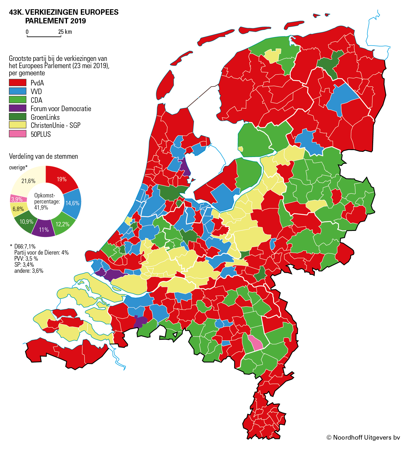 • Gebruik kaart 43K Verkiezingen Europees Parlement 2019 en kaart 43Q Verkiezingen Europees Parlement 2024. Wat valt je op?