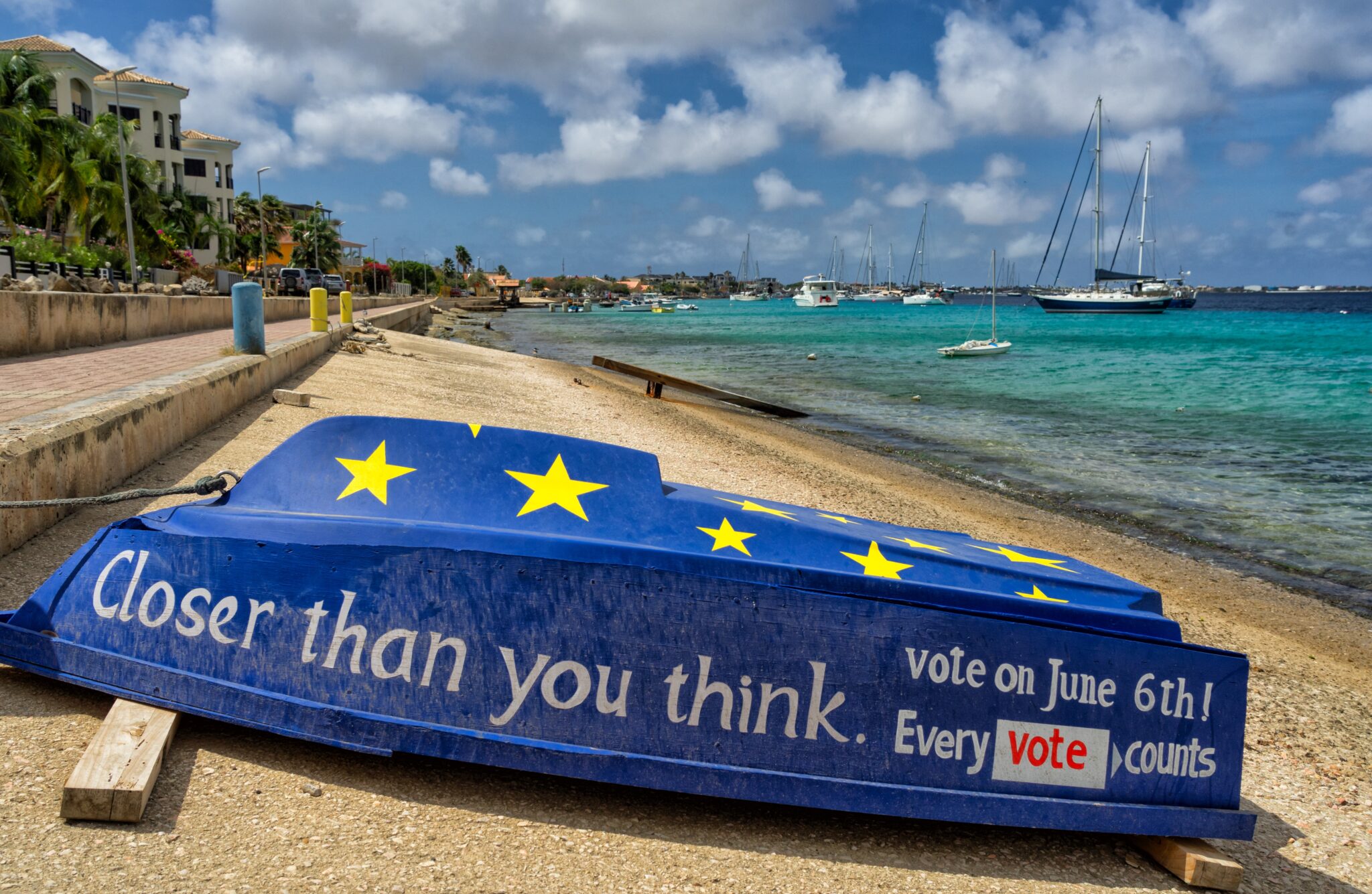 Op de foto zie je het strand van Bonaire. Ook het Caribisch deel van het Koninkrijk kon op 6 juni stemmen voor de Europese verkiezingen.